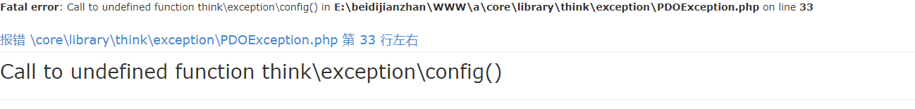 Call to undefined function think\exception\config()